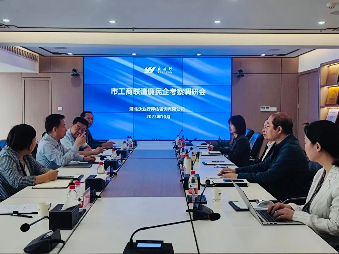 2023年10月26日,武汉市工商联副主席杨松民,武昌区委统战部副部长、区工商联党组书记、会员企业党委书记吕志新一行莅临永业行,考察指导清廉民企建设工作。永业行董事长潘世炳、常务副总裁吴学锋热情接待。 潘世炳对杨松民一行的到来表示热烈欢迎,感谢武汉市、武昌区工商联对永业行发展的关心和关注,并从清廉经营理念、清廉组织建设、风险防范措施、内控监督体系、亲清政商关系等方面介绍了永业行清廉建设情况。 杨松民对永业行在诚信经营、制度建设、风险排查、廉洁教育等方面所取得的成绩给予充分肯定,对潘世炳同志参与亲清政商关系、民主监督