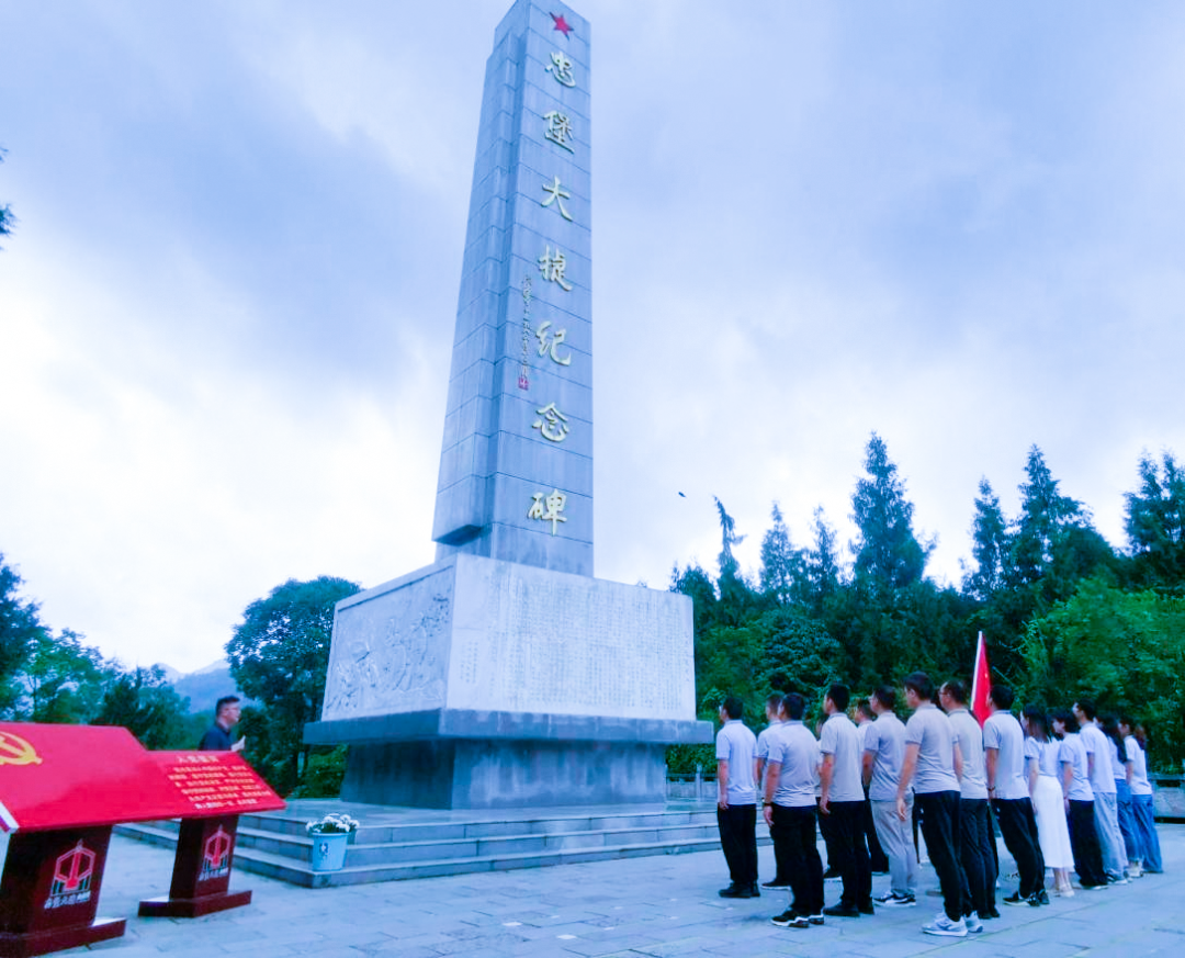 纪念碑前,雷小明带领大家向革命先烈三鞠躬并献上鲜花,表达对革命先烈无限怀念和崇敬之情。在革命先烈们的见证下,全体党员面对鲜艳的党旗郑重宣誓,重温入党誓词。