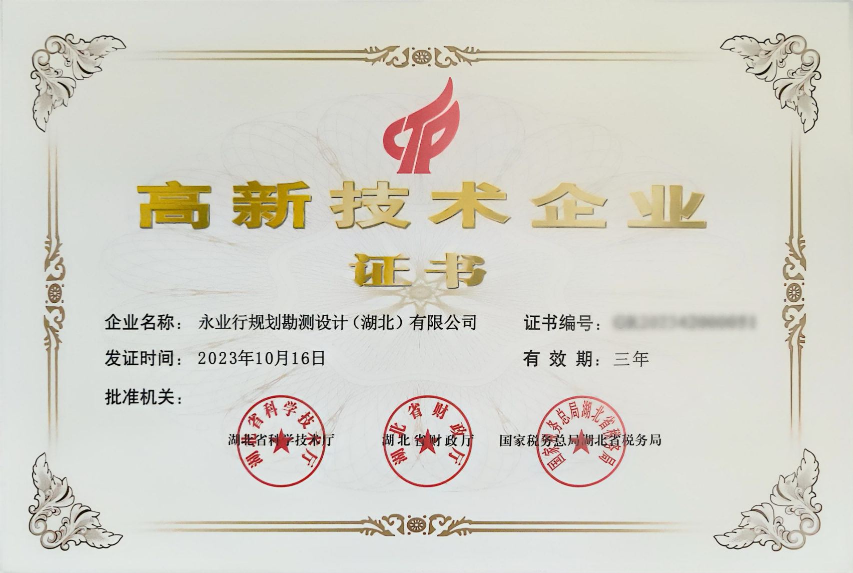 国家高新技术企业——永业行规划勘测设计(湖北)有限公司
