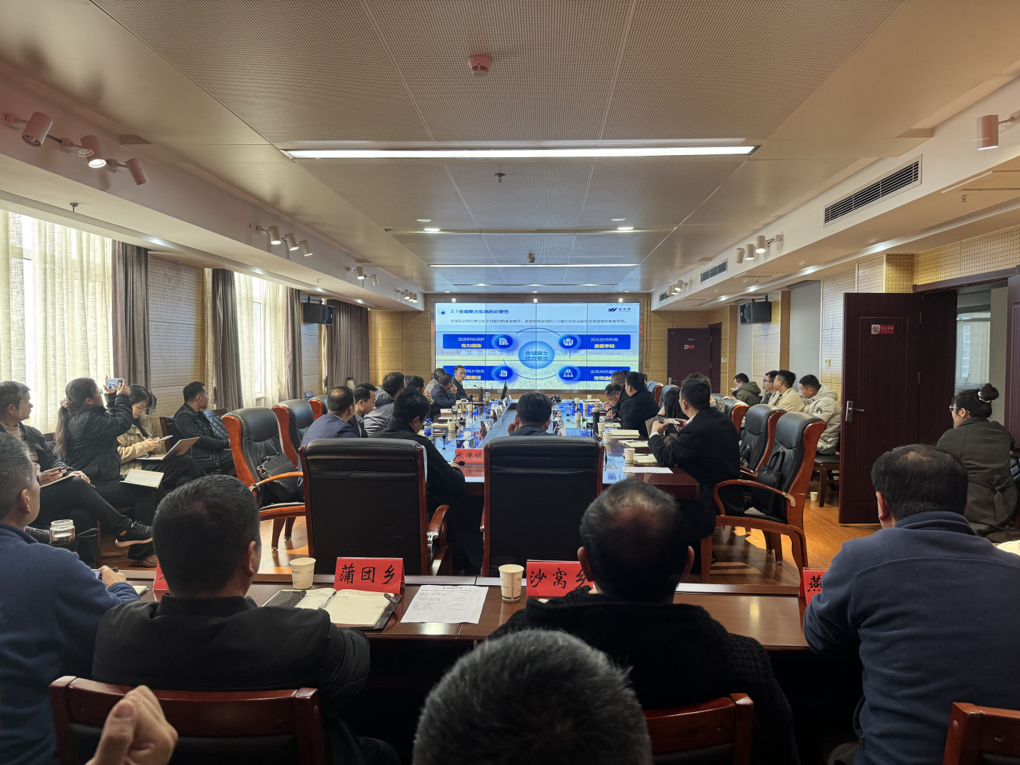 鄂州市局相关业务科室、各区局及乡镇分管领导、市国土整治机构全体人员,金融机构、相关平台公司等代表;永业行资源环境事业群大客户部副总监钟志成参加会议。