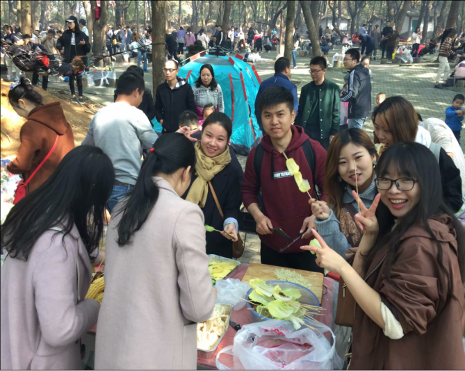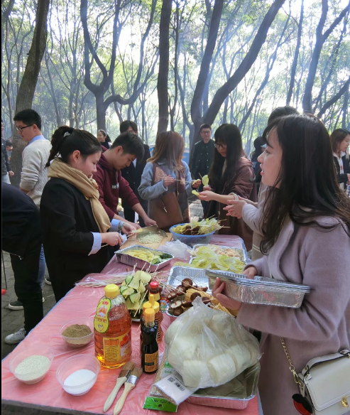 在烧烤活动现场,大家拿出提前准备好的食材,分工合作,体验了“自己动手、丰衣足食”的乐趣。在制作和分享美味的过程中,工作的压力得到了释放、同事间的感情得到了交流。大家烤得热火朝天,吃得不亦乐乎!欢声笑语连成片,其乐融融,充分体验了野外集体生活的乐趣。