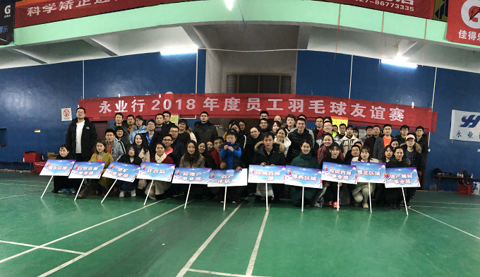 为进一步丰富公司员工业余文化生活,搭建职工互动交流平台,营造和谐永业行氛围。2019年1月26日,永业行组织开展了“永业行2018年度员工羽毛球友谊赛”由省内外各部门组成的11支队伍、86名男女运动员参加了本次比赛。