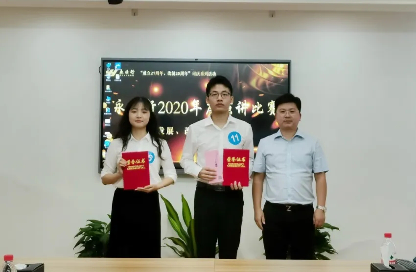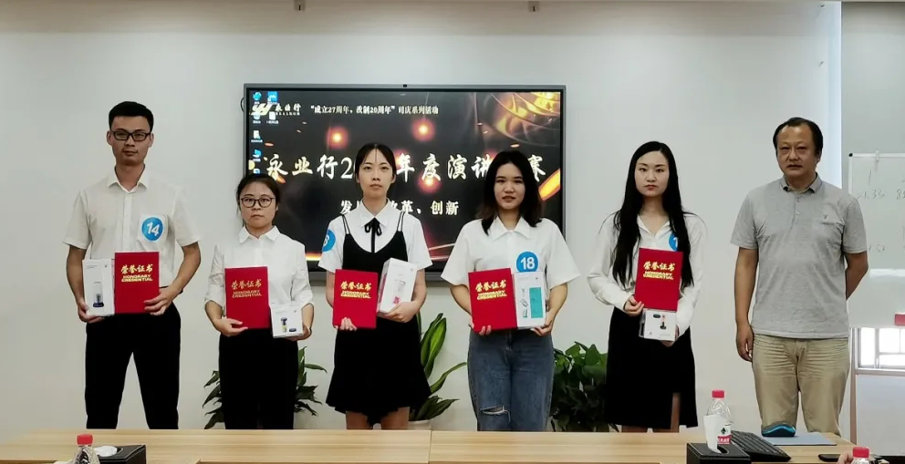 比赛现场,参赛选手结合自身工作岗位实际,围绕永业行开展的技术创新、市场开拓、管理升级、风险管控、文化建设等系列改革,有的回顾在永业行从职场萌新进阶职场精英的历程,释放乘风破浪的激情;有的分享自己对永业行创新文化的感悟,笃定勇往前行的信念;有的分析市场变革发展的趋势,孕育扬帆远航的希望……生动的语言、鲜活的实例、激昂的热情,抒发强烈的爱司之心、感司之情、报司之志,传达自己作为一名永业行人的骄傲和自豪。参赛选手们凭借扎实的功底、稳重的台风、高昂的激情、精彩的演讲赢得了阵阵掌声。