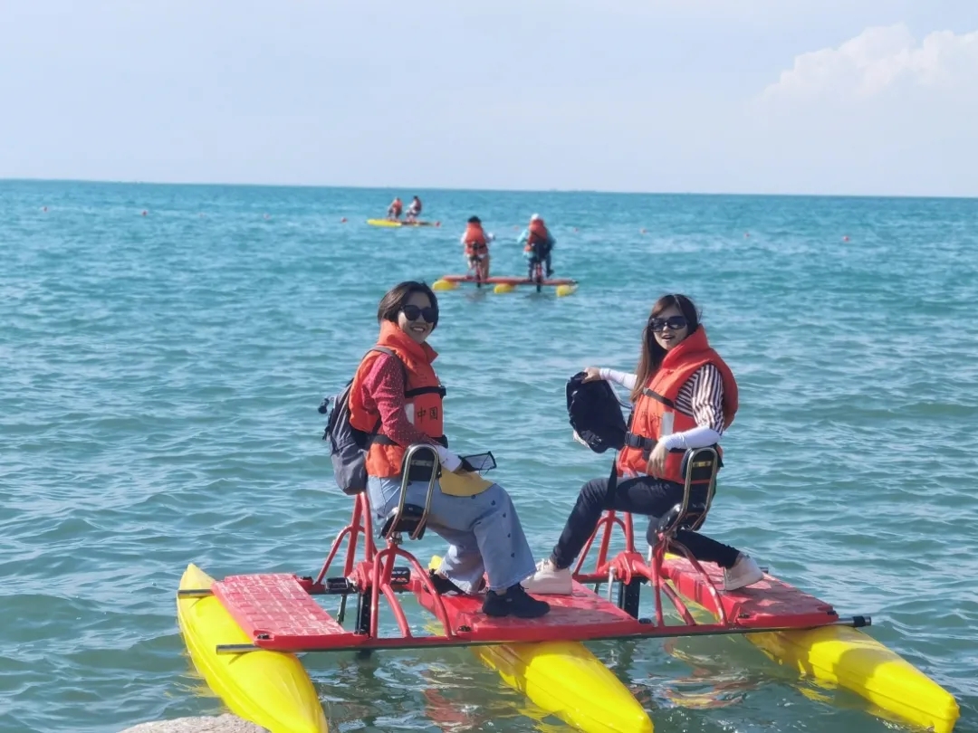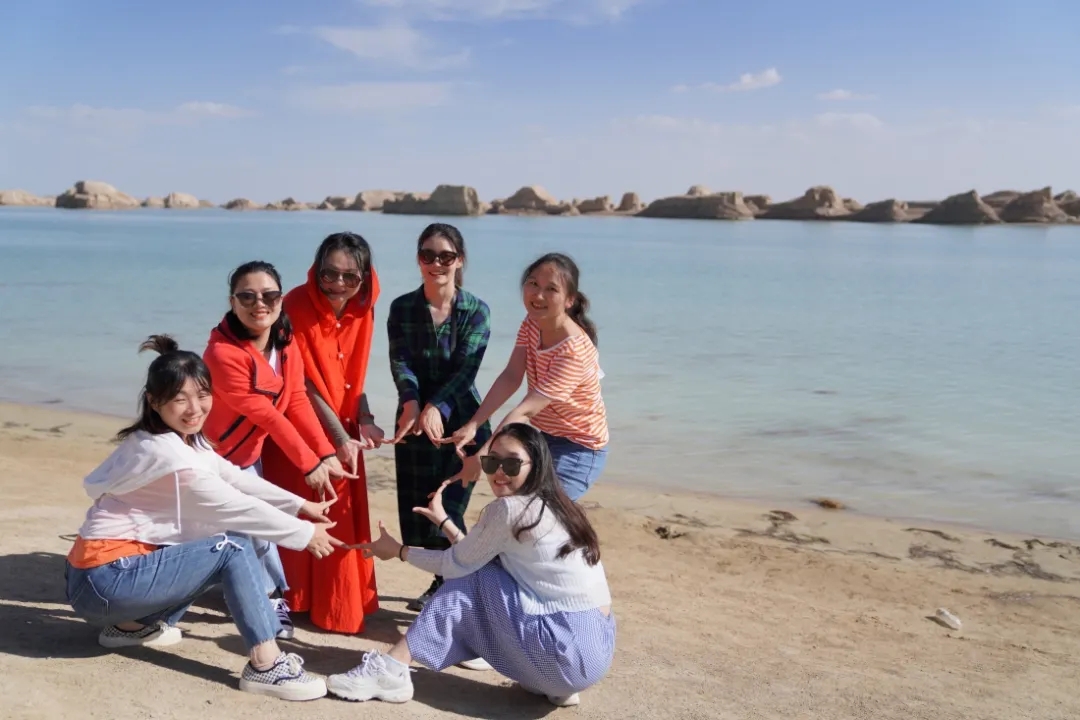 除了最美青海湖,此行还游览了有“青海马尔代夫”之称的西台吉乃尔湖和翡翠湖。翡翠湖湖水颜色如翡翠般美丽,像是上天赐予大自然的一块绿宝石。西台吉乃尔湖则是方圆百里大漠戈壁无人区的珍宝明珠,得益于大自然的鬼斧神工,一望无际的蔚蓝湖面让人流连忘返。大家在此乘船、游玩、合影,享受大自然恩赐的同时,不忘激励奋进,描绘永业行的美好明天,誓以更加积极的姿态投入到今后的工作之中。