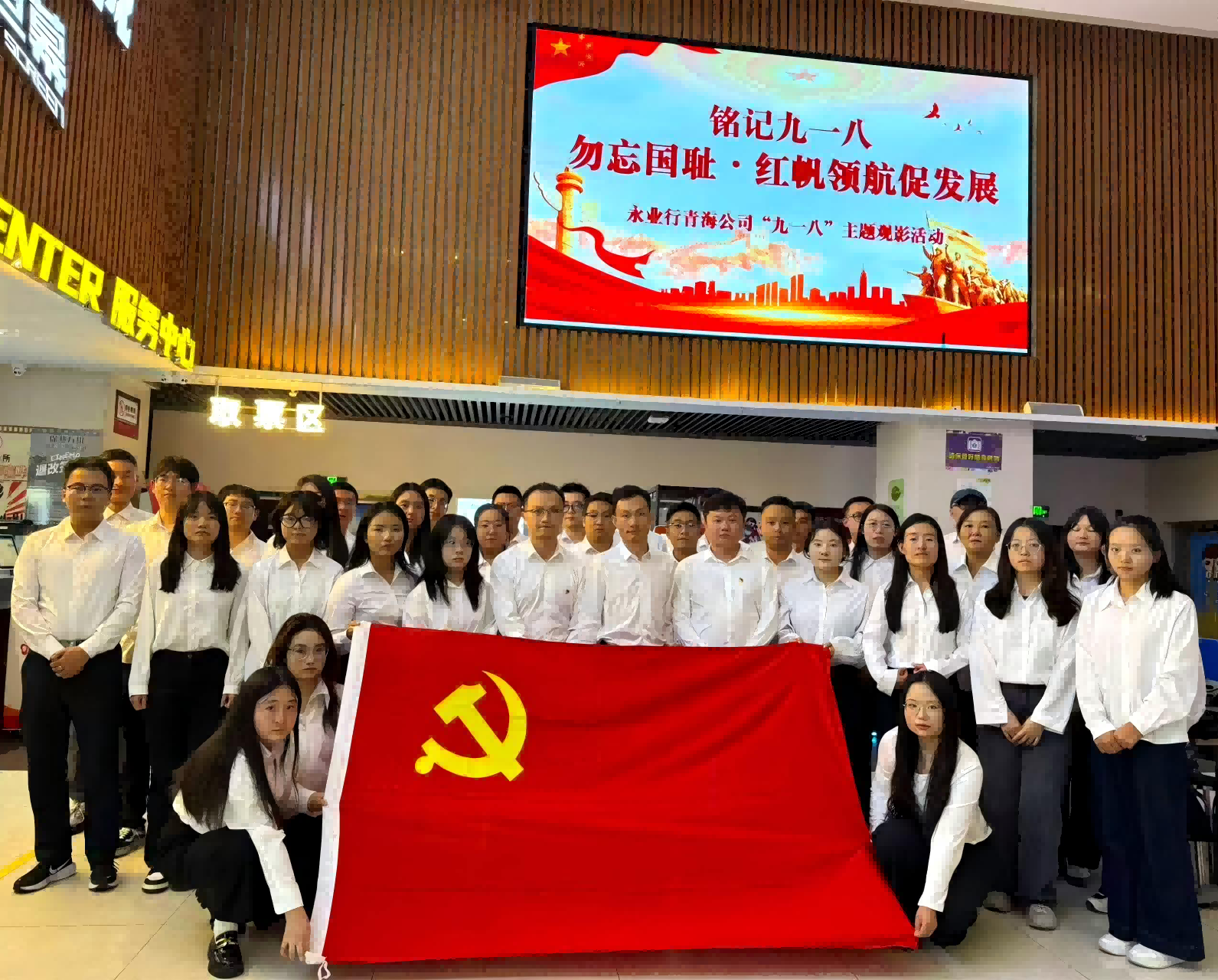 此次活动旨在铭记“九一八”事变的民族伤痛,缅怀先烈,增强员工民族责任感。活动当天,全体员工准时抵达影院集合,在运营中心人员引导下签到领票、有序入场。